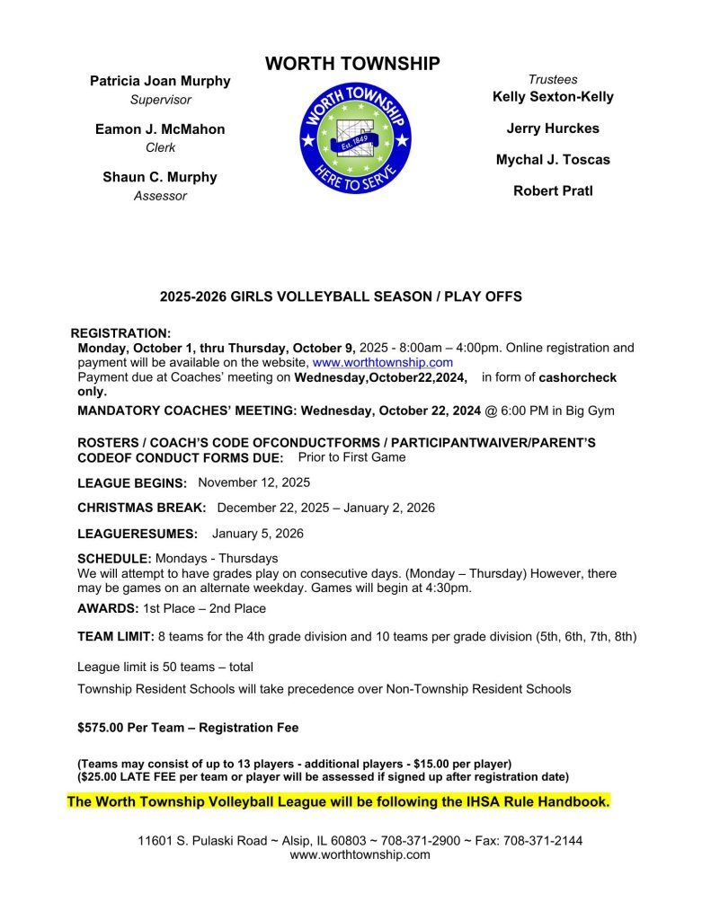 Looking for the latest news from Worth Township? Follow us on Facebook or subscribe to our email newsletter.