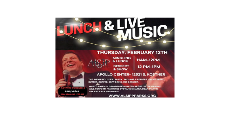 Enjoy an afternoon of great food and timeless music at Lunch & Live Music, hosted by the Alsip Park District.