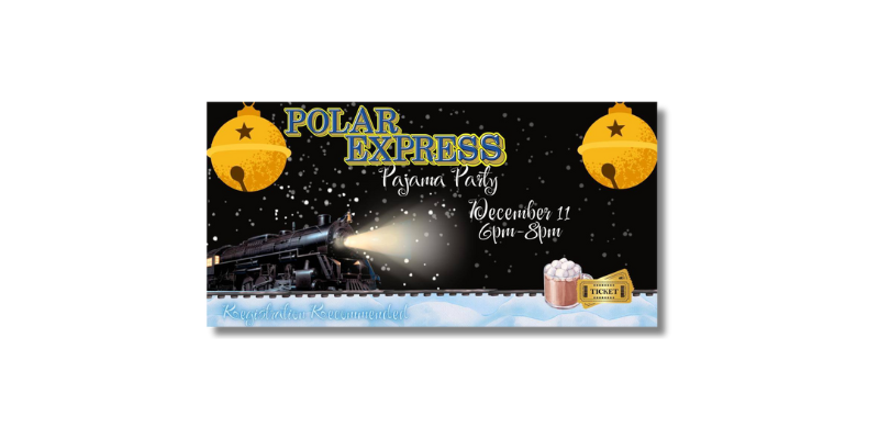 For Polar Express, register in person at the Childrenโs Desk. Each child will receive a Golden Train Ticket for a special treat at the pajama party!