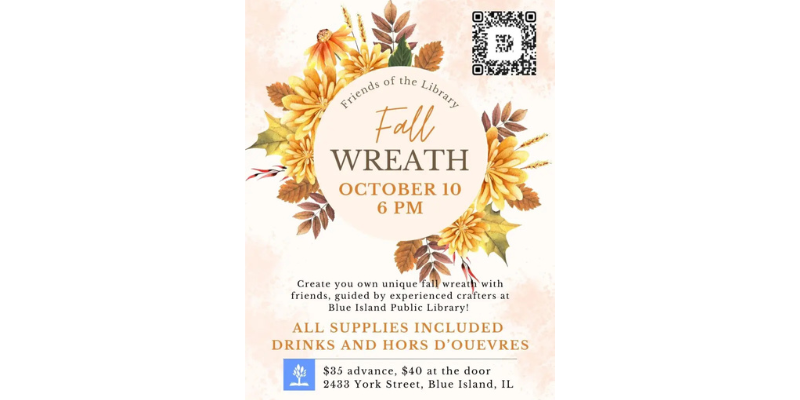 Create your own unique fall wreath with friends, guided by experienced crafters at the library.