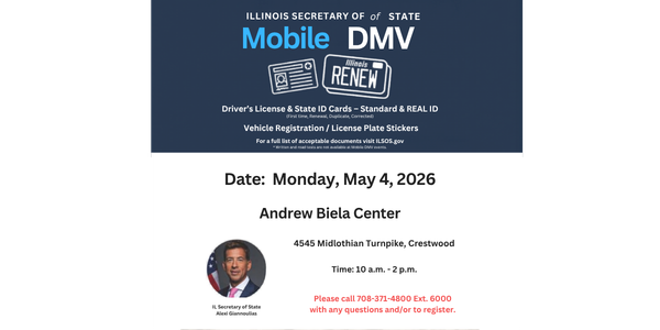 The Illinois Secretary of State’s Office is bringing the Mobile DMV to Crestwood!