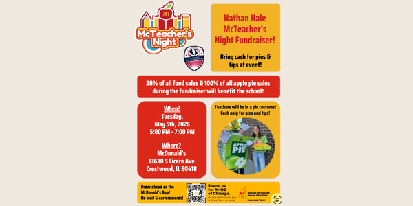 Support Nathan Hale School at McTeacher’s Night Fundraiser 🍎 Enjoy a fun evening where teachers will be on-site, even dressed in pie costumes!