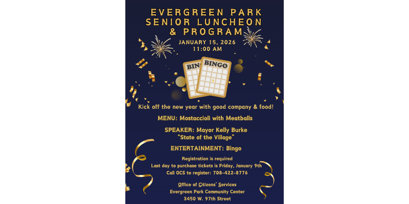 🎟️ Tickets: $10 and must be purchased at the Office of Citizens Services (3450 W. 97th St.) no later than Friday, January 9.