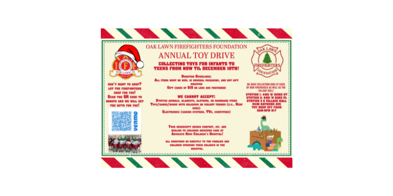 It’s that time of year again! The Oak Lawn Firefighters Foundation Local 3405 Annual Toy Drive is officially underway.