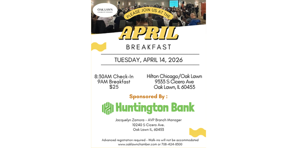 Start your morning with great food, networking, and community connection at the Oak Lawn Chamber of Commerce April Breakfast! ☀️