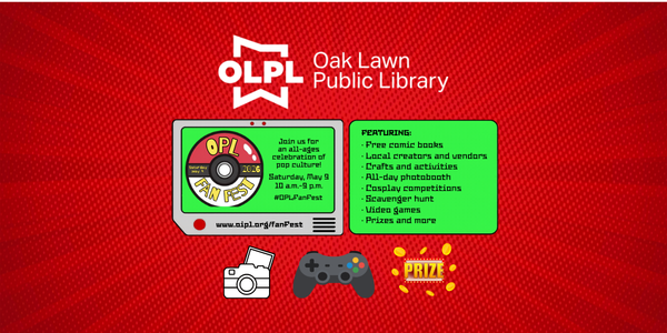 Join Oak Lawn Public Library for Fan Fest ๐ฎ, an all-ages celebration of pop culture featuring free comic books, local creators and vendors, crafts, and interactive activities.