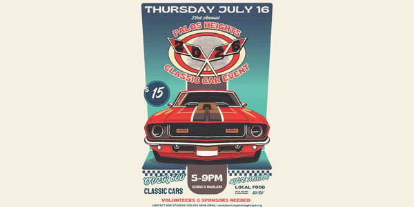 Join us for the 23rd Annual Palos Heights Classic Car Event, an exciting evening filled with classic cars, live music, and community fun! 🚗